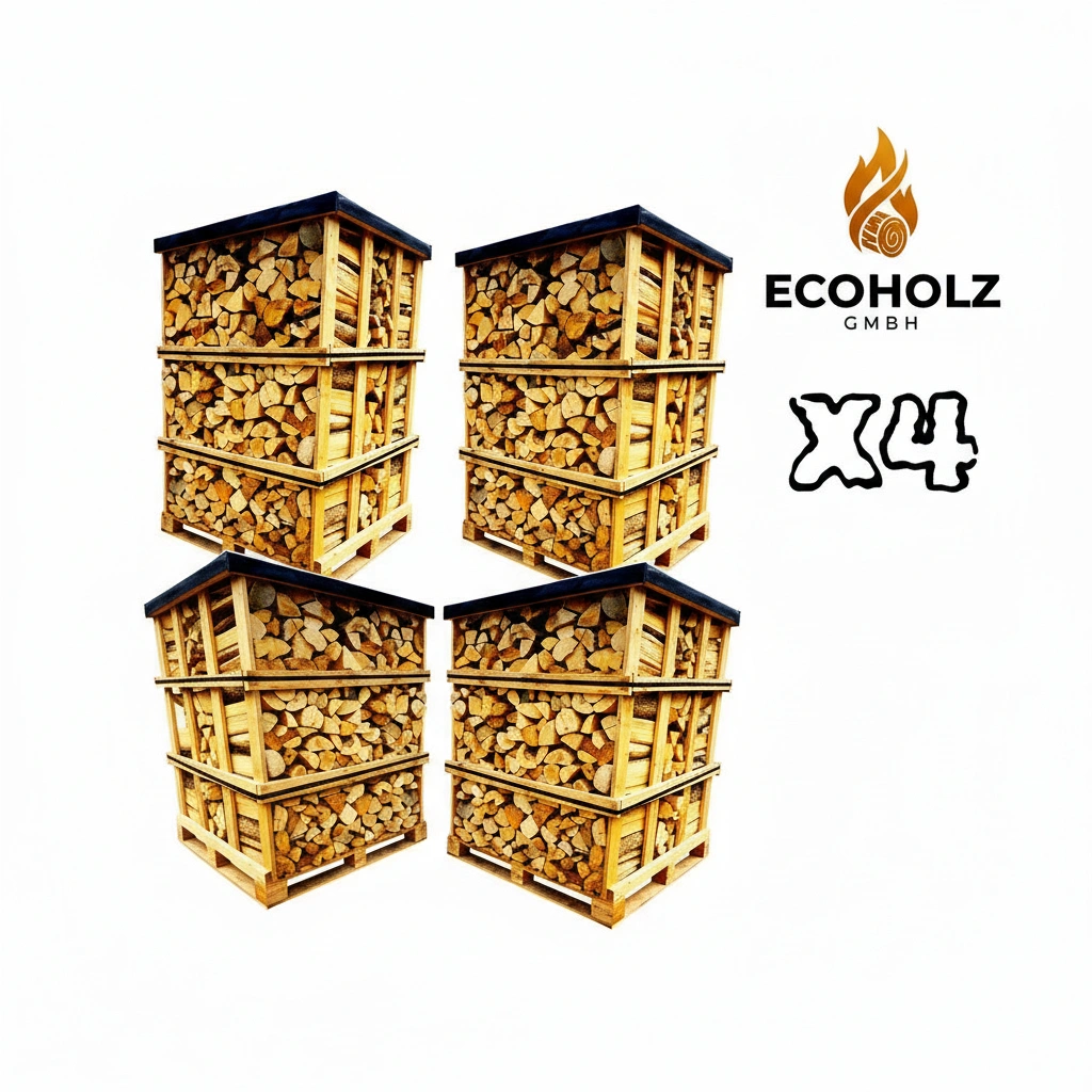 Maxi-Sparpaket: 4 Paletten (13,2 rm) Brennholz in 1m-Scheiten. Die wirtschaftlichste Lösung für Ihren Jahresvorrat.